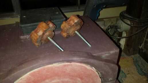 Detalhamento dos dois manípulos laterais, confeccionados com madeira e dois parafusos fixados no centro.