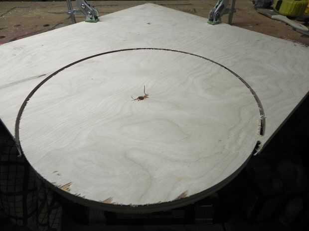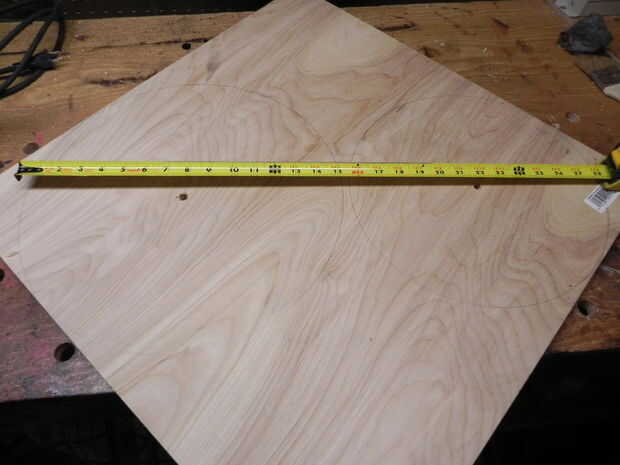 Mi torno actual tiene una capacidad de 16", por lo que a construir un disco de 15" para el despacho. Tomar un 2 x 2' pieza de 3/4" madera contrachapada y corte dos círculos: el de 15" uno y un 6.5" una estabilidad (lo que puede ajustar el resto de la Junta.