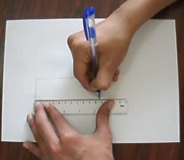 2. a continuación dibuja dos líneas verticales de 10,7 Cm de cada lado de la primera línea.