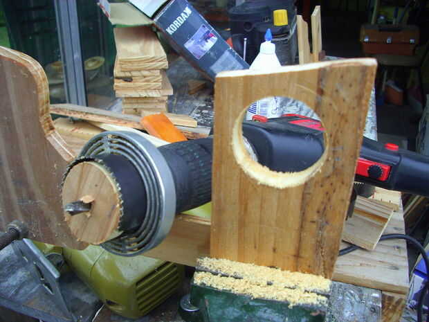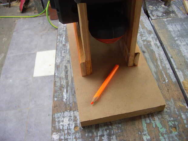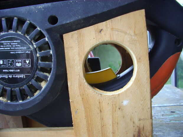 Me di cuenta de que el interruptor se esconde detrás de los soportes traseros, pero que no es un problema tener la posibilidad de hacer un agujero de 4 cm de diámetro. Estaba a punto de continuar con pegamento para hacer una especie de caja sólida contendría la lijadora con el lijado superficial para arriba, cuando me acordé de otro de mis principios de diseño: "Hazlo fácil de guardar." Por lo tanto, sobre la marcha, decidí usar las bisagras en lugar de pegamento a los montantes. Me llevaría un poco más largo, pero vale la pena.