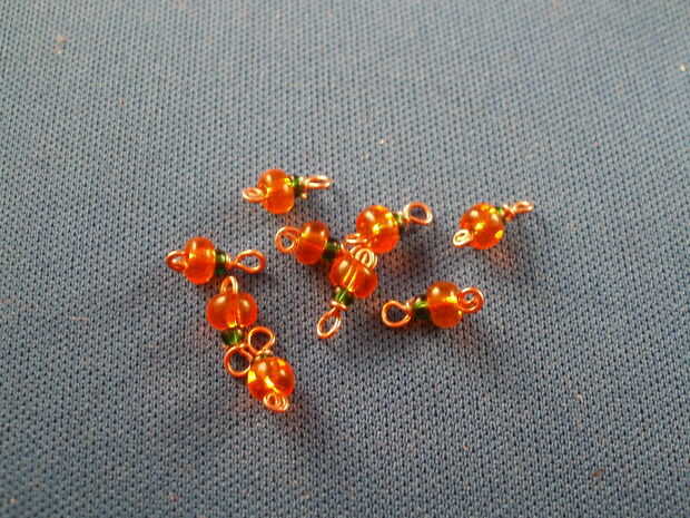 Desea hacer más de sus lil' calabazas. Sólo muestro 9 en la foto pero terminé haciendo tres más para un total de 12. La cantidad que usted necesita dependerá de su patrón de Rocallas en el siguiente paso o el tamaño de sus granos.