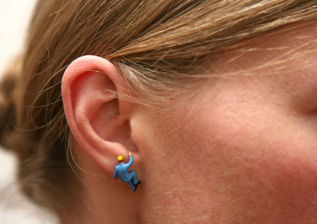 Die Minimenschen lassen sich als Ohrstecker tragen, die Frisur kann damit dekoriert werden oder es lässt sich auch ein einzelnes Männchen als Anstecknadel tragen.