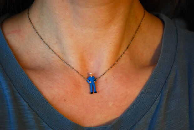 Eines meiner Männchen stemmt sich die Arme en die Hüften. Ich habe ein dünnes Silberkettchen durch die Armbeugen gefädelt und fertig guerra mueren Halskette.