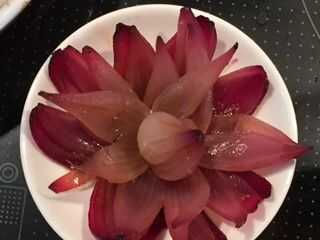 Hermoso... ¿no?. Cuidadosamente escoge cada lirio cebolla y colocar en el plato.