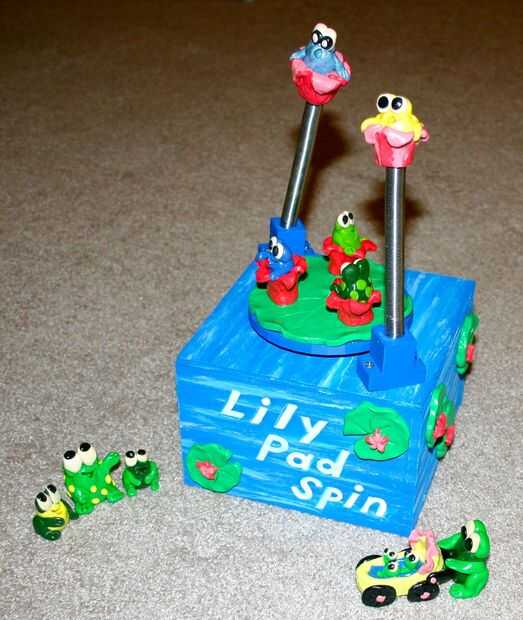 Este paseo, diseñado por mi esposa, es la rana de "familia". Mamá, empuja un cochecito de los renacuajos mientras papá maneja los hermanos mayores. Las ranas tienen una opción de la "vuelta" del montar a caballo o sentado en el muelle de rebote.