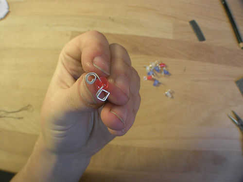 Bobina de los cables de cada LED: hacer el cable más largo (positivo) en una espiral cuadrada y el cable más corto (negativo) en una espiral redondeada.