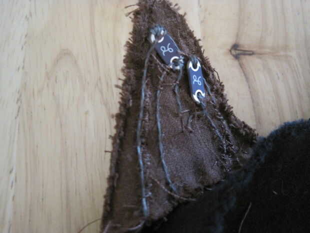 8. Coser los ojos de botón en la pieza frontal del cuerpo por encima del hocico.