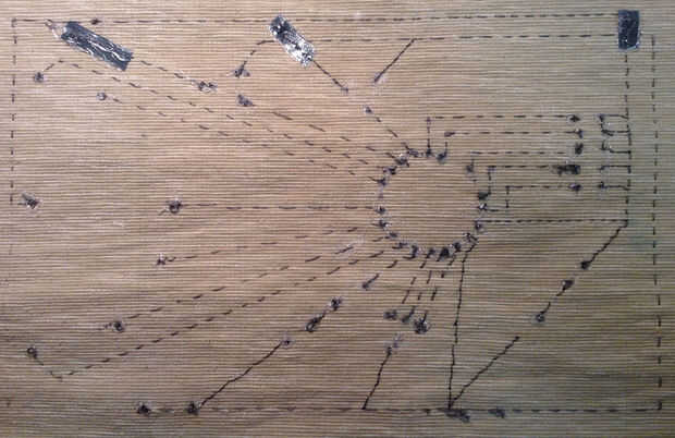 Consejo: Tenga cuidado de donde cruzan las líneas positivas (rojo) las líneas de tierra (negro). Usé un pedazo pequeño de corte plástico del embalaje LilyPad para asegurarse de que las líneas no cortos. He utilizado pegamento caliente para virar hacia abajo el plástico para no pillar cualquier cosa.