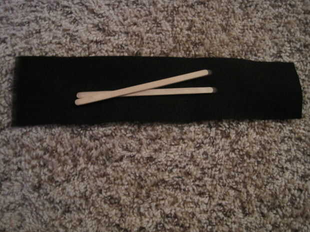 2. luego, coloca dos palitos en el centro y coser el fieltro para arriba alrededor de ellos.