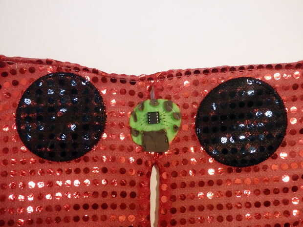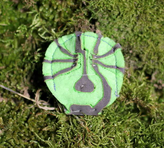 En Resumen, es una pieza de fieltro, laminado con una pieza conductora de lycra que es luego cortado con láser en una plataforma de prototipado de soldadura-libre (con un soporte de la batería!). Para construir y para utilizarlo sólo necesita 3 pasos: