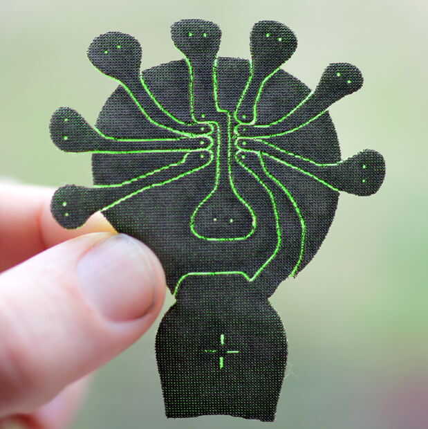 Actualización: acabo de ver este otro proyecto similar tienen http://www.kobakant.at/DIY/?p=2672 donde hacen una breakout Junta de tela de corte láser, pero también utilizan algo especializados tales como tela de fusión y colable acrílica o soldadura. Este diseño que presento aquí espera lograr una meta muy similar (en formas tal vez no sea tan sólidas) con materiales más limitadas.