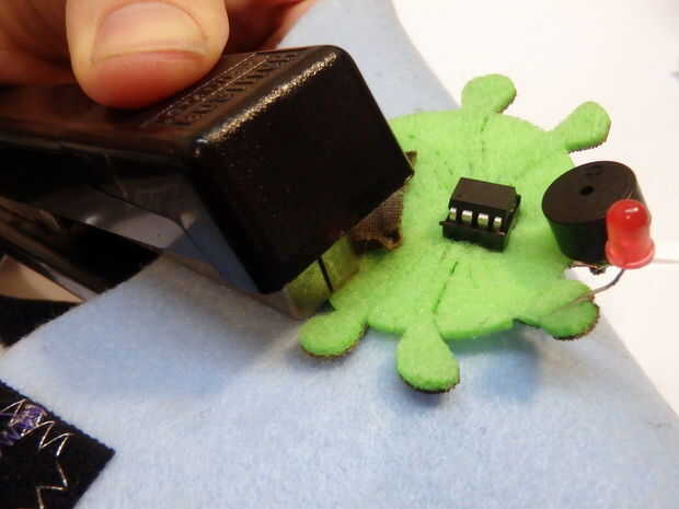 Puede coser, grapa, velcro, o pegue el parche entero en otros materiales y utilizar hilo conductor para líneas de sensores o salidas como luces, altavoces o servos.