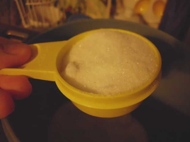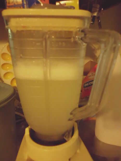 Nota: Espuma en la parte superior de esta mezcla se se filtra hacia fuera en el siguiente paso.