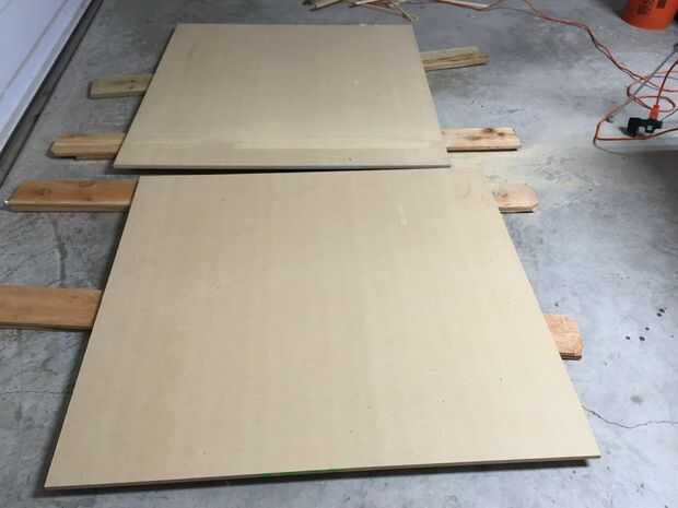 He comprado un 5/8 "x 4 x 8 pies pieza de MDF. Cortarlo en casa pero usted puede pedir que se corte en el centro del hogar, generalmente de forma gratuita, donde usted compra su MDF.