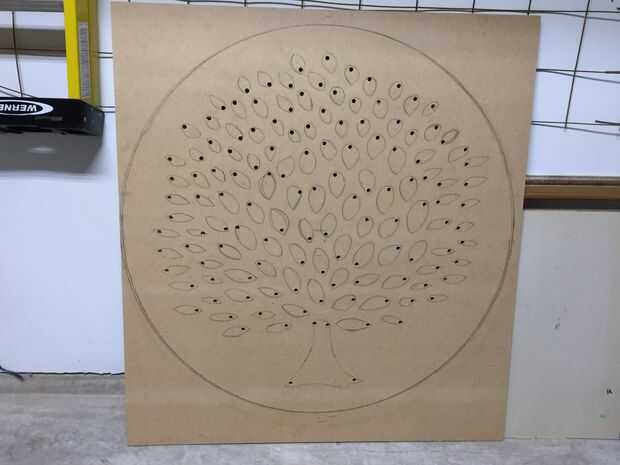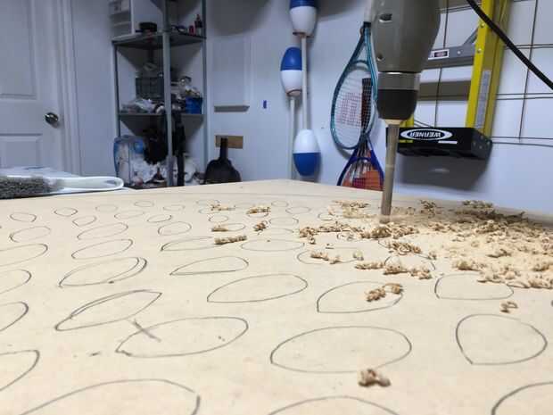 A continuación que pre-perforados los agujeros en todas las áreas que sería cortando. Esto es para permitir que la cuchilla de jigsaw que se insertará en cada sección para el corte. La segunda imagen muestra todos los agujeros después de la perforación.