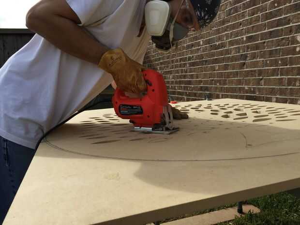 MDF puede ser muy polvoriento es importante usar una mascarilla o un respirador si tiene uno. También he trabajado fuera para no tener que preocuparse por la limpieza. Me tomó cerca de 2 horas a cortar todas las piezas y con un par de descansos para dejar que el resto de mi brazo. Una sierra de vaivén, o al menos mi rompecabezas, vibra un poco.