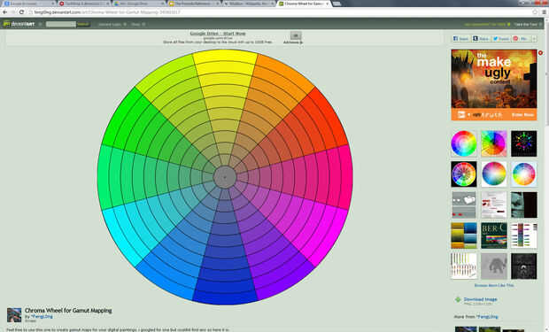 * Yurmby es el apodo dado a las ruedas de color rojo/amarillo/Magenta/cian/azul/verde (YRMBCG). Una rueda menos precisa y útil es el "Estándar", rojo, amarillo y azul, que espacios las primarias mal. Para obtener más información, ver la intro enlace a James Gurney.