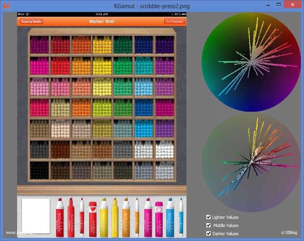 Gamas no son sólo para colorear digital! Si trabajas con pintura real, puede hacer gamas digitalmente para propósitos de planificación. Puede incluso hacer gamas analógicas de su pintura por una rueda de color de pintura y colocación de máscaras sobre ella.