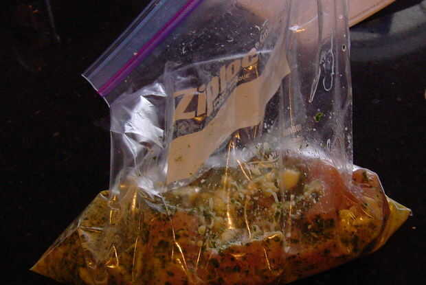 Poner los trozos de pollo en una bolsa de cremallera y volcar en la mezcla de la menta. Aplastar todo y refrigere por unas 2 horas.