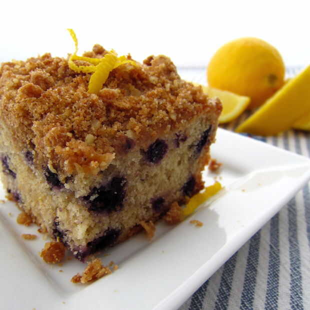 Crema de la mantequilla y el azúcar en el cuenco de una batidora eléctrica equipada con el accesorio de paleta en alto durante 4-5 minutos, hasta que luz. Reducir la velocidad a baja y agregue los huevos 1 a la vez, luego agregar la vainilla, ralladura de limón y crema agria. En un recipiente aparte, cierna harina, polvo de hornear, bicarbonato de sodio y la sal. Con la batidora a velocidad baja, añadir la mezcla de harina para rebozar hasta sólo combinar. Doble de arándanos y revolver con espátula para asegurarse de que la masa se mezcla completamente.