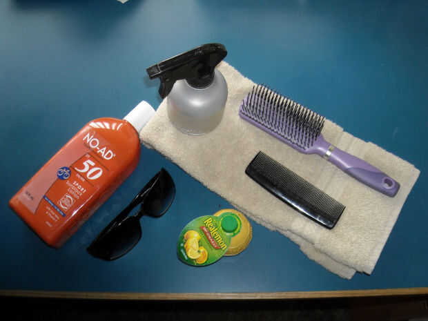 2. un frasco rociador ducha o agua. Algo para conseguir su pelo empapado.