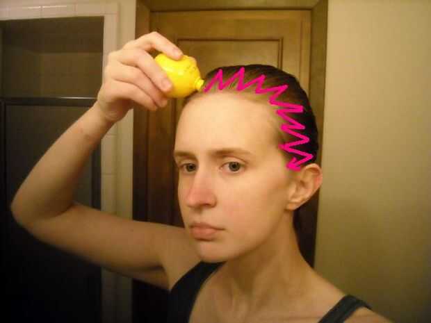 Para personas con cabello largo--usted puede intentar goteo algunos jugo de limón en la palma, frotándose las manos, luego correr sus manos por el cabello, especialmente los extremos. (Tenga cuidado de los pequeños cortes... corte + limón = grande ouch!)