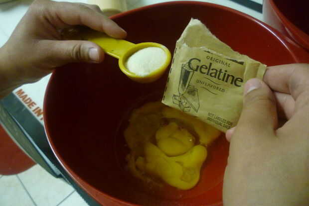 Nota: Generalmente se utiliza la gelatina frío pies y requiere agua hirviendo, pero en este proceso que no necesita el agua hirvienda porque va ser cocido en el horno.