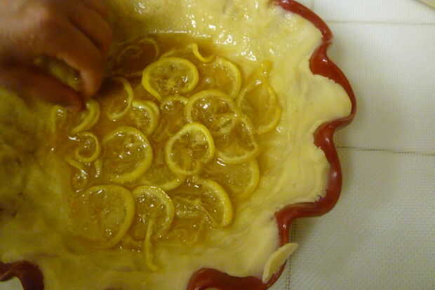5. la parte inferior de la corteza con rodajas de limón, excepto el jarabe para el llenado de la línea.
