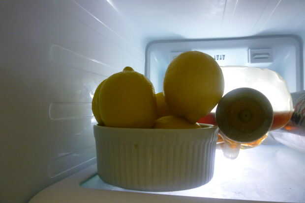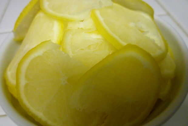 1. Lave el cuatro o cinco limones y pat seco.  Colocarlos en el congelador durante 2 horas, hasta que estén firmes.
