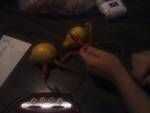 3) limones enlace los dos juntos al insertar el alambre con un clip y un penique en cada limón. Entonces en el limón con un penique en cada limón. Luego el limón con un centavo, insertar el clip y un penique en cada limón. Luego en el limón, inserte el clip con el cable conectado. En el otro limón, inserte el centavo con un cable conectado. Si lo hiciste bien, tienes un centavo y un clip en cada limón y un cable libre que sale de cada limón.