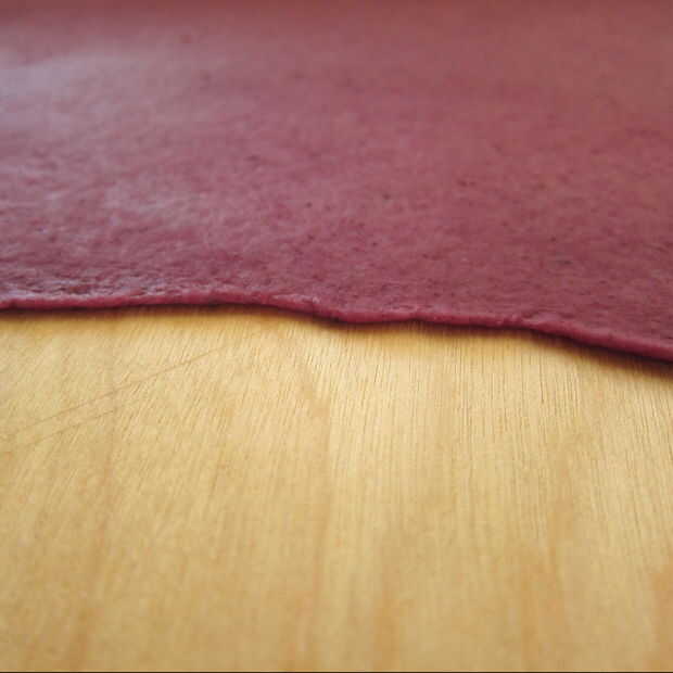 Cortar masa de pasta por la mitad. Usando un rodillo de amasar una mitad de la masa tan fina como usted puede sin conseguir agujeros en ella. Si tienes una máquina de pasta podría utilizar en su lugar. Colóquela suavemente sobre el plato de ravioles y hacer guiones con el pulgar en cada taza de ravioles.