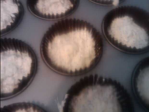 -una vez todo mezclado poner mezcla en 12 casos de muffin.