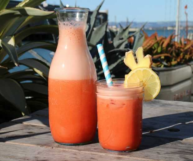 Mientras se acerca el verano, me he sido preparando a mi juego 'refrescante bebida' por probar algunas recetas nuevas. Me encanta cómo salió esta fresa limonada de jengibre. Decidí no cuela, que lo hizo casi como un latte de limonada, con diversión burbujeante espuma de fresa en la parte superior. YUM!!!!