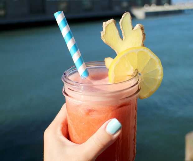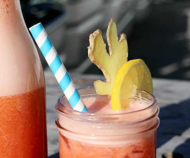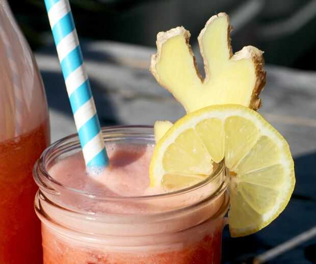 Cortar algunas rodajas de limón y jengibre para decorar. (I * cuidadosamente * corte mi jengibre la forma plana para que me terminan con piezas de aspecto salvaje, coral y, pero no dude en cortar sin embargo desea!)