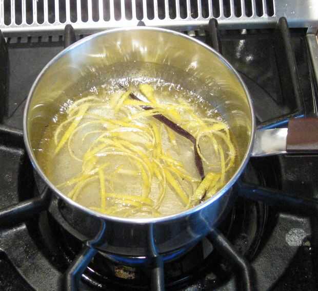 Si nunca has probado esto, es realmente interesante y delicioso. Hervir media vainilla en rama con el almíbar o añadir una barra de extracto de vainilla a la mezcla enfriada.
