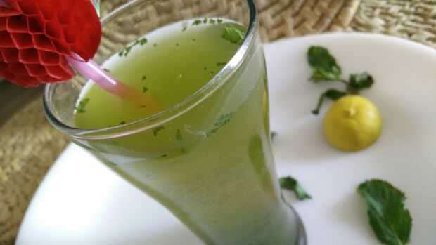 limonada de 3 pasos con mentaPaso 1: ingredientes 1/4 de taza de sugerjugo de un limónun tazón de cereal de hielo3 tallos de mentay una licuadora o un procesador de alimentosPaso 2: mezcla!!! añadir todos los ingredientes juntos y licúe hasta obtener