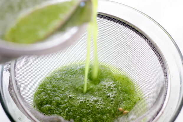Notas de la receta: Tenía que trabajar en lotes, ya que mi procesador no podrían sostener todo el pepino y un almíbar. Por supuesto ir cansado poner en un recipiente y comenzó a revolver. Si no tienes un colador de malla fina le animo a utilizar una bolsa de tuerca ni nada que se librará de la pulpa (he usado media, nuevos por supuesto