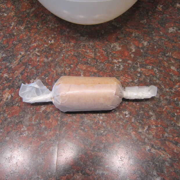Formar la masa en un registro y envolver bien en papel encerado. Coloque en el congelador.
