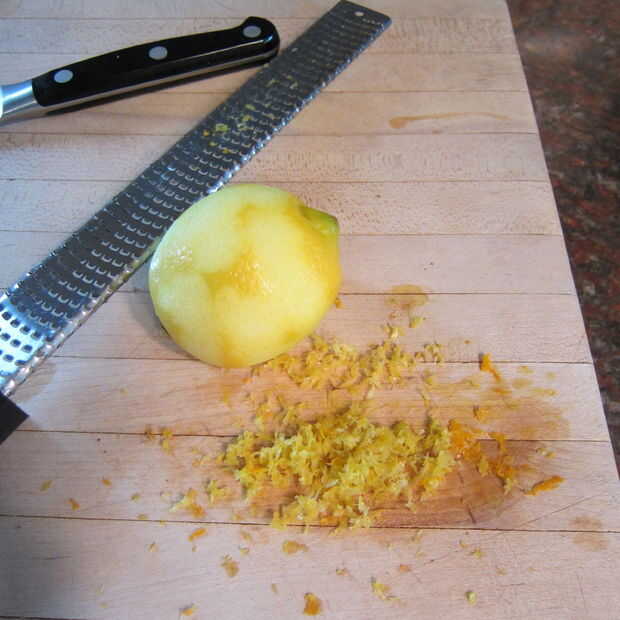 A la otra mitad de la masa añadir limón ralladura y fresa limonada té. Mezcla bien para incorporar.