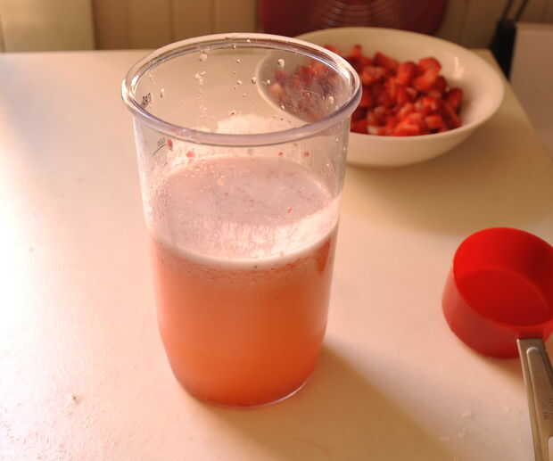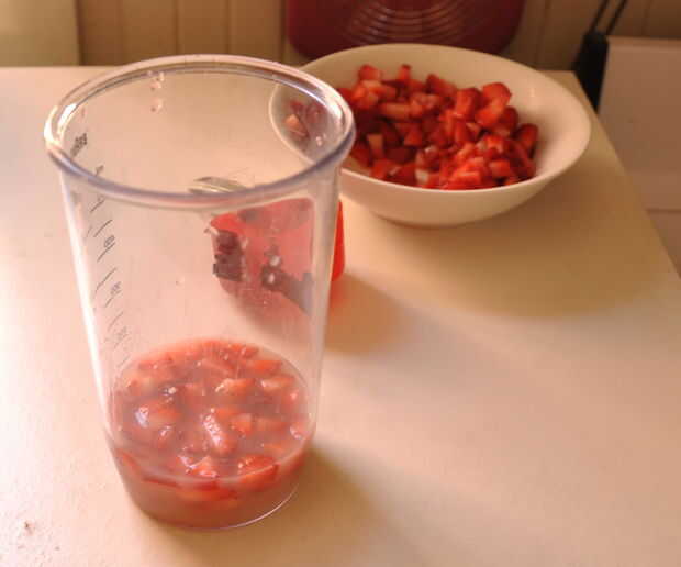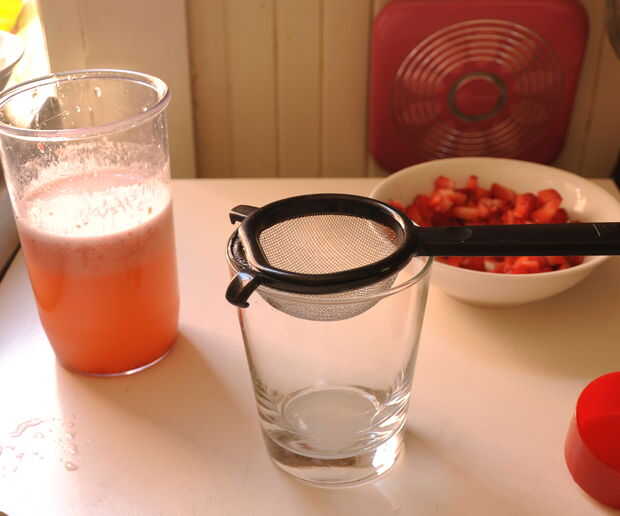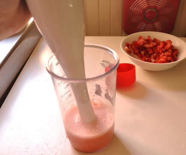 Mezclar todo junto y luego mezclar con la batidora de mano. Colar si se desea.