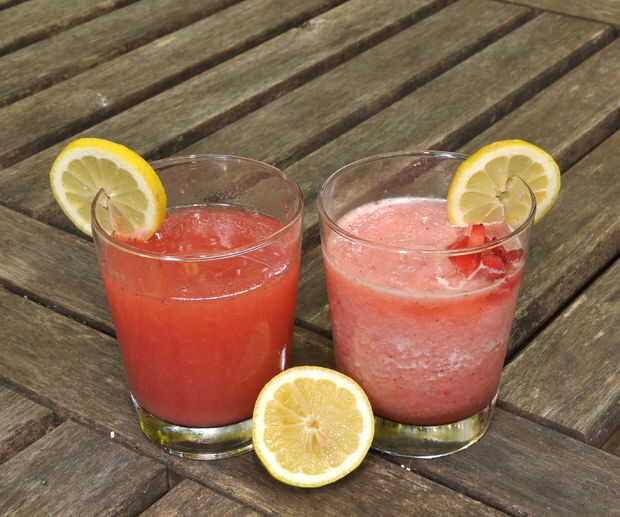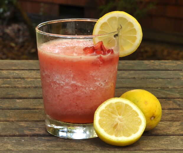 Los ingredientes que usted necesitará:Fresas4-6 limonesHielo32 onzas de aguaLanzador1 taza de azúcarUn cuchilloTablero de corte---------------------------------------------------------------------------------------------------------------------------