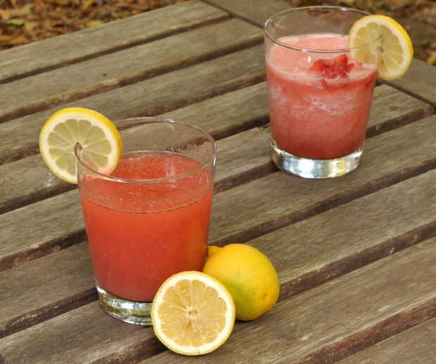Limonada de fresa fresca para los días de verano soleados! Y es tan fácil de hacer! :)¿Quieres saber cómo hacerlo?: Receta de limonada de fresaIngredientes:5 limonesun puñado o dos de fresas1 taza de agua3 1/2 tazas de agua fría1/2 taza de azúcar (añ