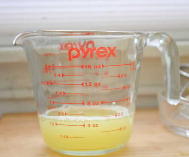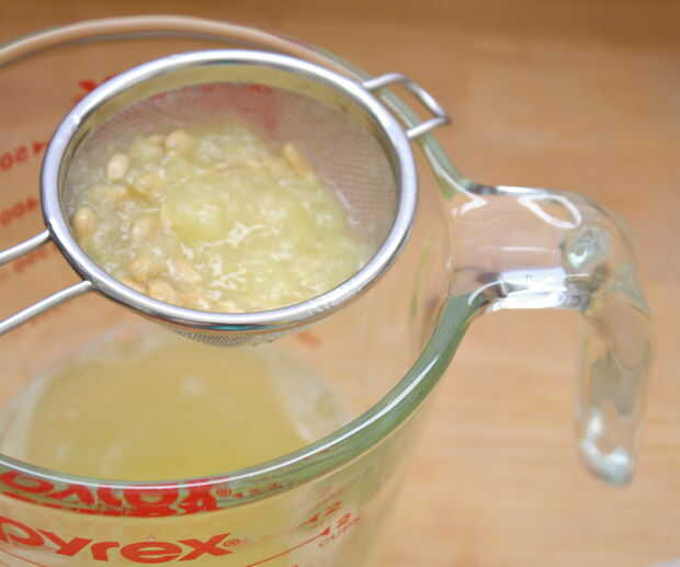 Necesita entre 1/2 y 2/3 taza de jugo de limón. Les jugo y verter la pulpa, jugo y las semillas en un colador. Presione la pulpa para sacar todo el líquido. :)