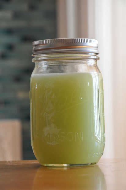 Siempre hago unos 50-100ml jarabe simple más que planeo usar. Esto me permite 'rematar' mi mezcla y asegúrese de que tiene un completo 1 litro. Inevitablemente a perder una pequeña cantidad de líquido durante la filtración por lo que tener un poquito de ayuda extra almíbar a cerrar esa brecha.