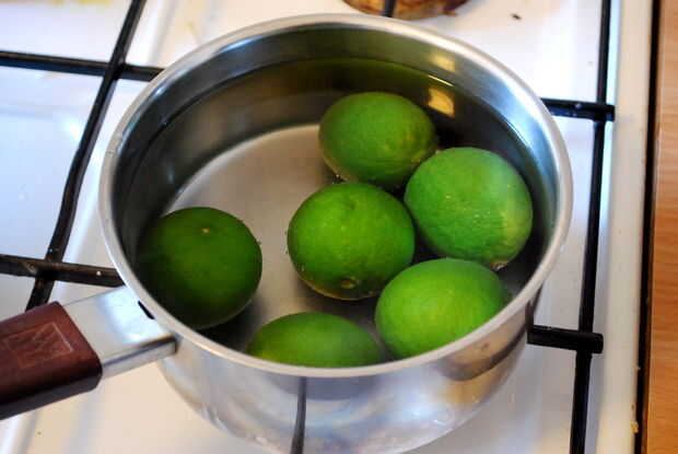 Lavar meticulosamente las cales, colocarlos en una olla y cubrirlas con agua.