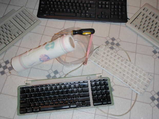 Los teclados son una trampa de polvo, suciedad y residuos. Voy a decirles cómo se puede limpiar hacia fuera, también útil si las teclas son pegajosas o no funcionan.Lo que usted necesita:> destornillador plano (estoy usando una de mi multiherramienta
