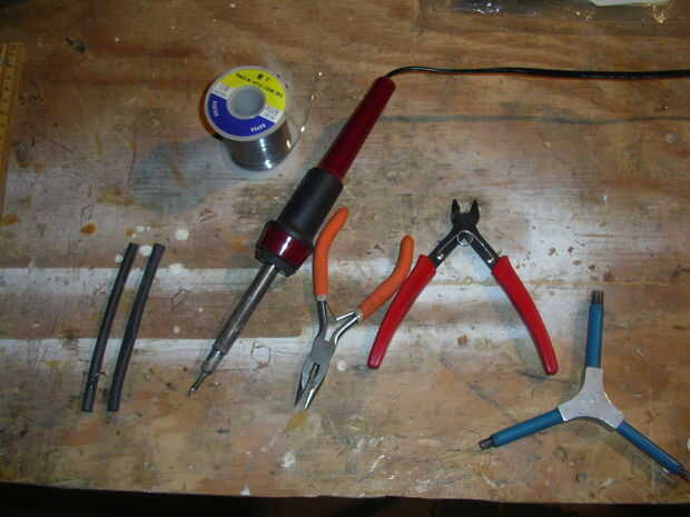 Y usted necesita cosas, una plancha, unos cortadores de alambre, una stripper (o un cuchillo) de soldadura y la soldadura.