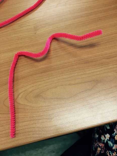 -Depende de cuánto estás haciendo tus labios que quizás tenga que agregar otro limpiapipas para este paso. Gire el extremo del nuevo limpiador de pipa alrededor de uno de los extremos. y envolvemos a lo largo de la parte inferior de los labios. (Esto formará el labio inferior).