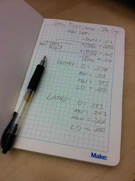 He medido el molino y el torno y tomó notas en mi cuaderno de proyecto.