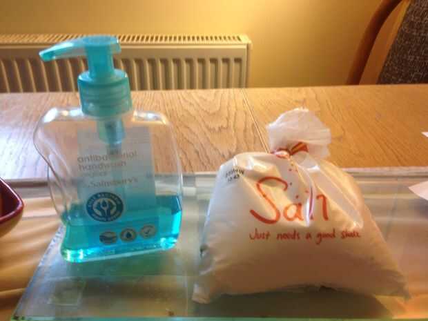Todos vas a necesitar es algo de sal (no sal de la roca) y un detergente desinfectante de mano o líquido incluso he usado jabón justo antes de